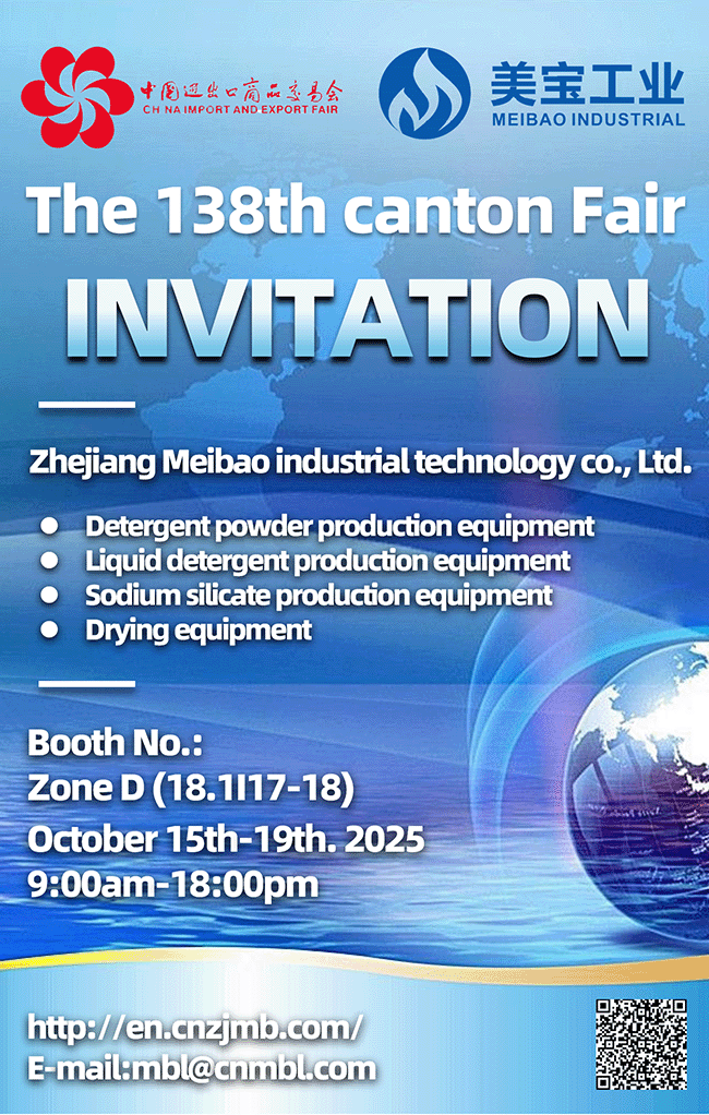 Meibao will present its detergent powder production lines, liquid detergent production systems, low-temperature pyrolysis & carbonization equipment, poly aluminium chloride production lines, hot-air furnaces, and drying equipment, demonstrating its latest innovations in energy-efficient and environmentally friendly chemical engineering solutions.